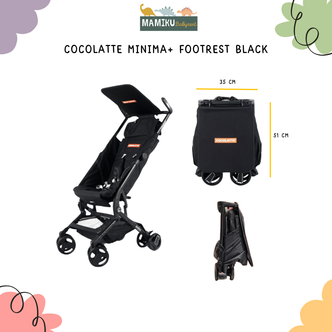 COCOLATTE | Minima Plus Stroller merupakan cabin size stroller yang bisa digunakan oleh bayi dengan berat maksimal 20kg ini sekarang dilengkapi dengan footrest, sandaran hingga rebahan untuk menjamin kenyamanan si kecil. Stroller minima ini juga sangat mudah untuk dibawa oleh moms and dads.